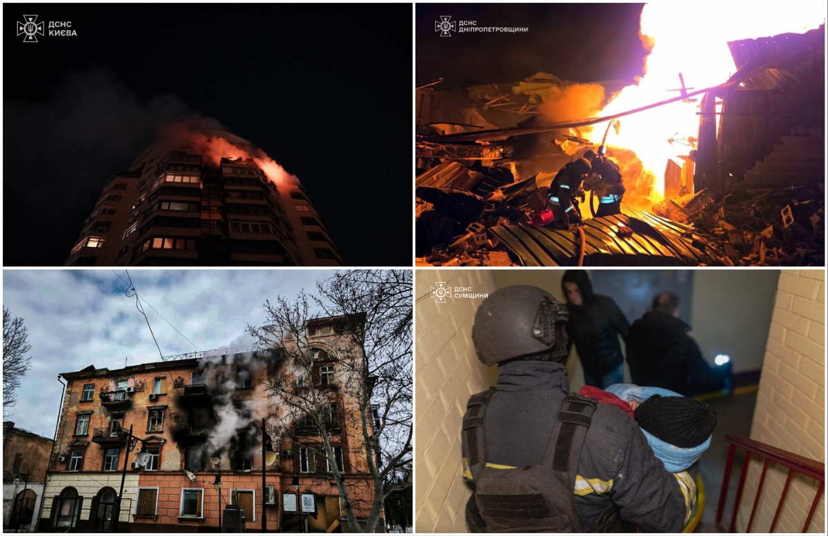 За словами глави держави, ворог завдав прицільних ударів по об’єктах енергетики, використавши понад 70 ракет та близько 450 ударних дронів. Під обстрілами опинилися Сумщина, Харківщина, Київщина разом зі столицею, Дніпровщина, Одещина та Вінниччина. Станом на ранок відомо про дев’ятьох поранених, зафіксовані пошкодження житлових будинків і об’єктів енергетики, у Києві після влучань дронів горіли багатоповерхівки, пошкоджено дитячий садок.
