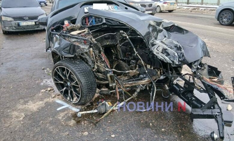 На Богоявленському в Миколаєві BMW розірвало навпіл: двигун вилетів після удару у стовп